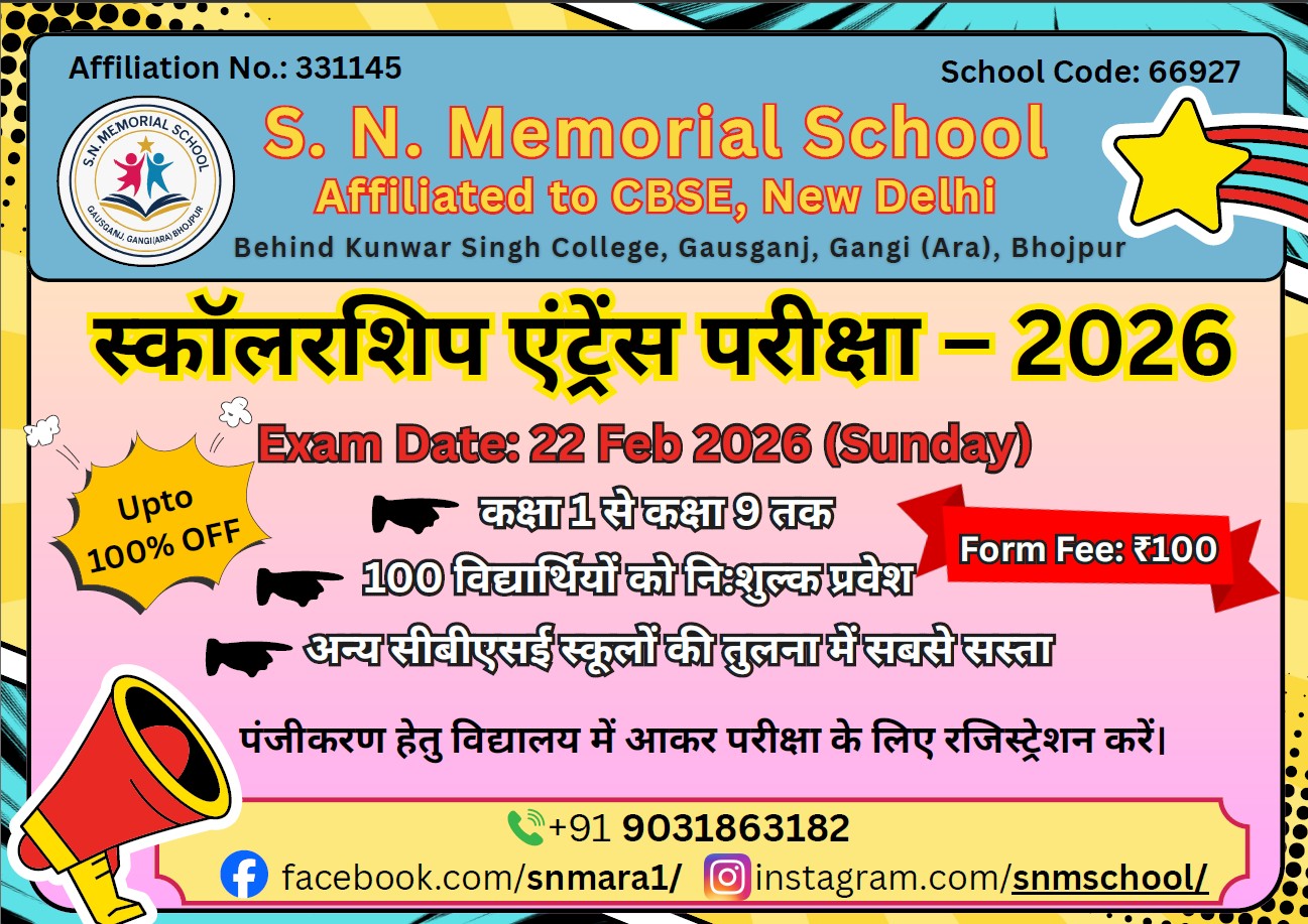 S.N. Memorial School is a CBSE affiliated institution committed to academic excellence, discipline, and holistic development of every child.